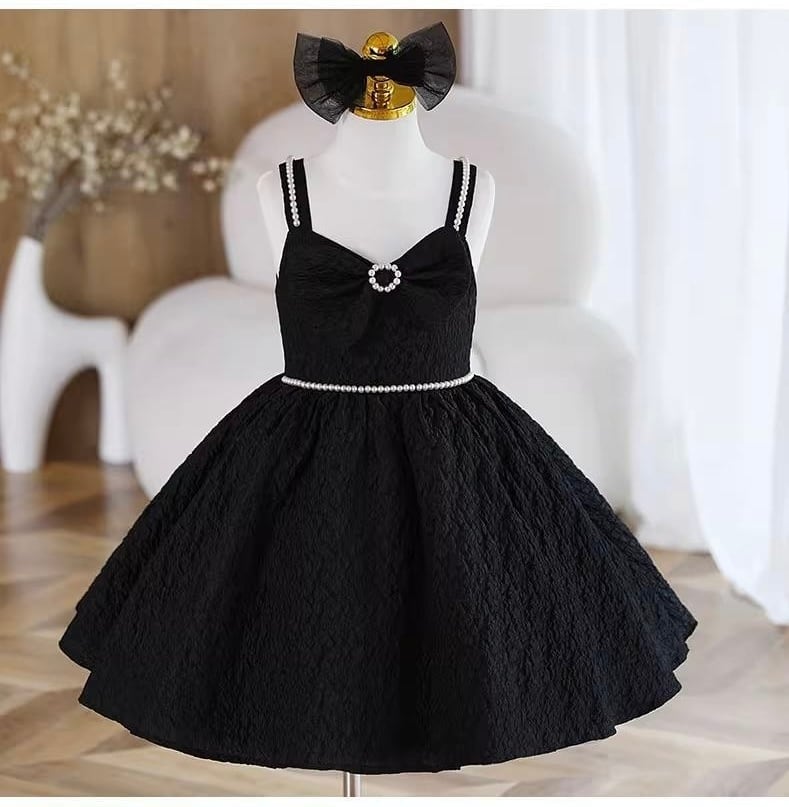 お子様のための素敵なキッズブラックリボンドレスをぜひお試しください。在庫に関するお問い合わせはお気軽にどうぞ!
