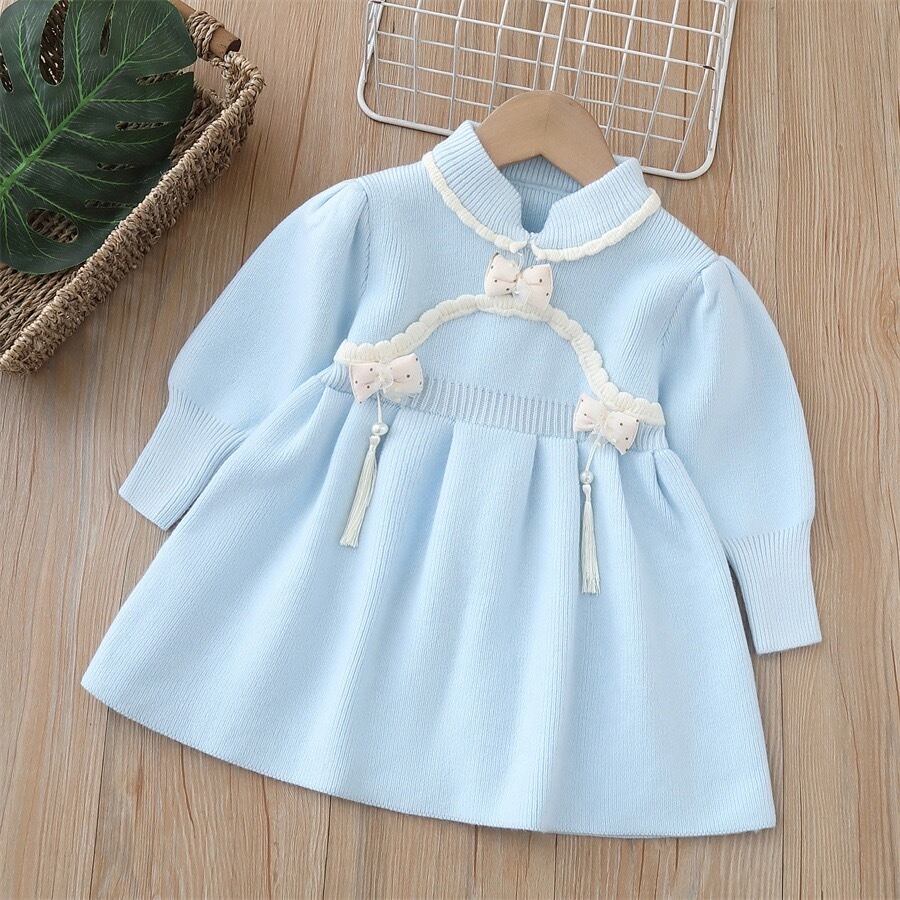 首元と胸元のリボンやタッセル飾りが、おしゃれで個性的。