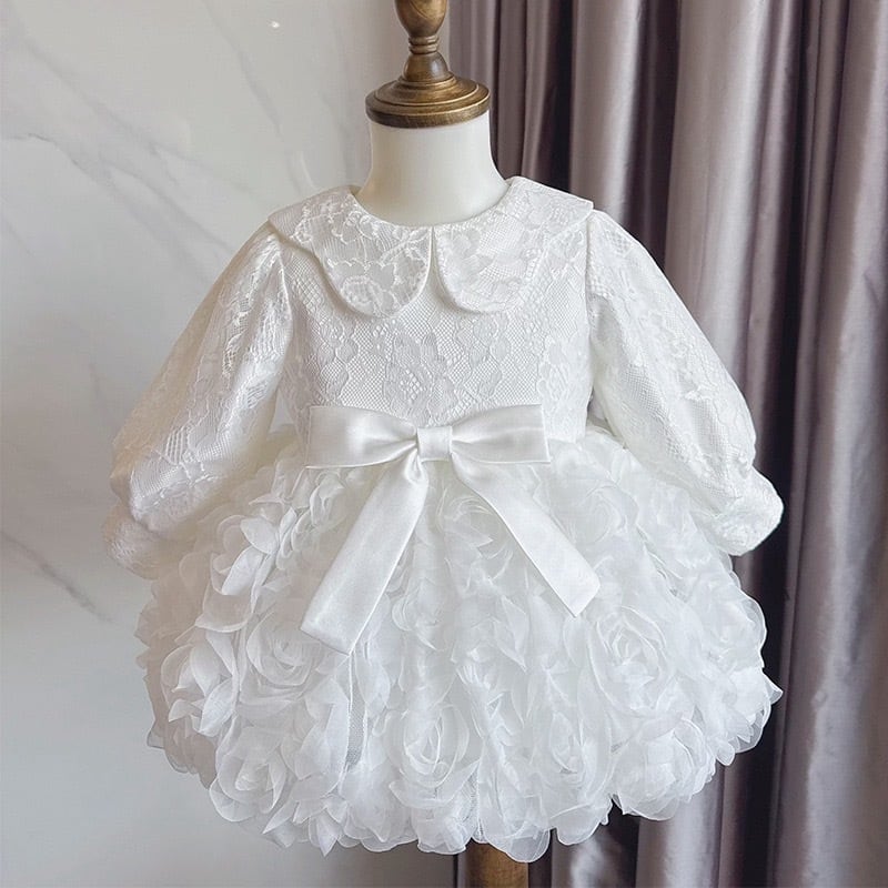 このドレスはふんわりとしたデザインが特徴で、女の子の持つ可憐さを最大限に引き出します!特別な日のお出掛けに最適で、素敵な思い出を演出する一枚です。