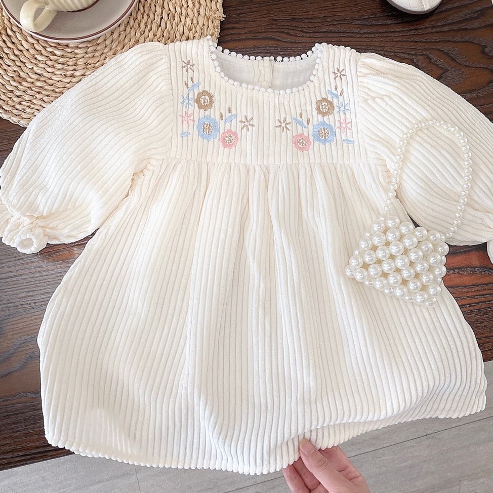 ■優雅な華やかさを演出するフラワーワッフルワンピース