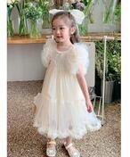 【即納】チュールドレス アイボリー リボン付き