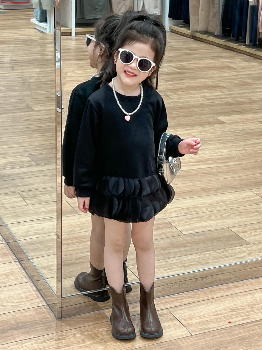 このシックフリルドッキングワンピは、上品なフリルが大人可愛い雰囲気を演出しており、特別な日にもぴったりな一着です!軽やかな素材が心地よい着心地を提供し、お子様が快適に過ごせるデザインに仕上がっています。どんなシーンでも愛らしい存在感を放つことでしょう♡