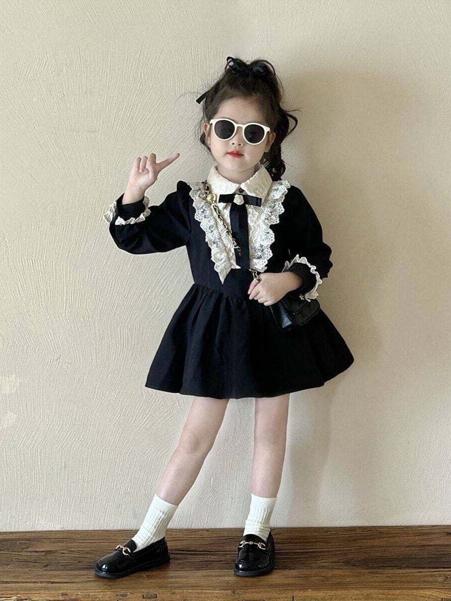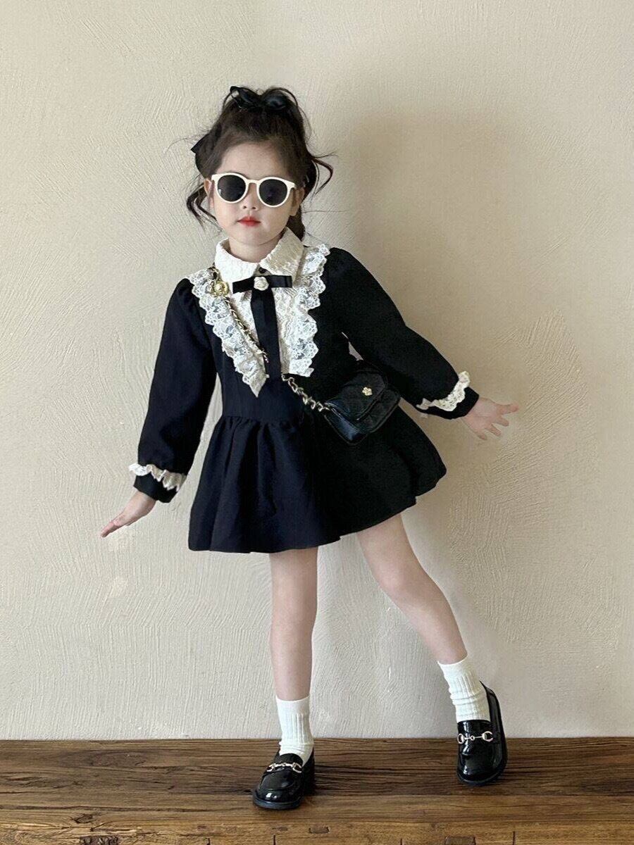 このブラックレースワンピースは、エレガントな雰囲気が特徴的な素晴らしい一着です!上品なレース地が、お子様の可愛らしさを際立たせ、特別な日やお呼ばれの場など、様々なシーンで大活躍します。軽やかなシルエットが動くたびに美しく、注目を集める存在になること間違いなしです♡