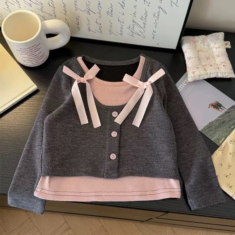 このWリボンバイカラートップスで、日常のスタイルに特別なアクセントを加え、大切な瞬間をお楽しみください♡