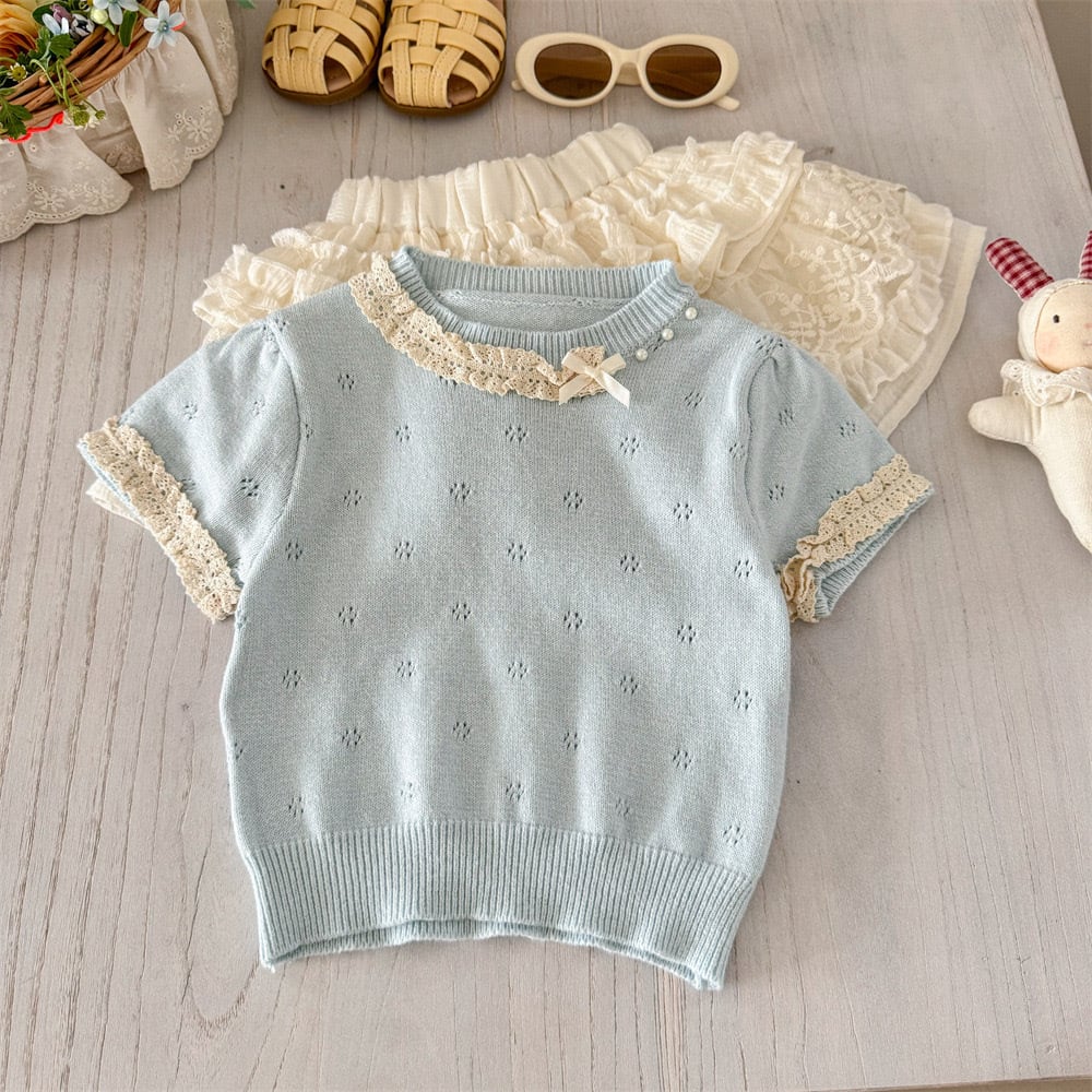 このマカロンブルーと可憐レースのセットアップで、お子様の魅力を引き出し、素敵な思い出をたくさん作ってください♡
