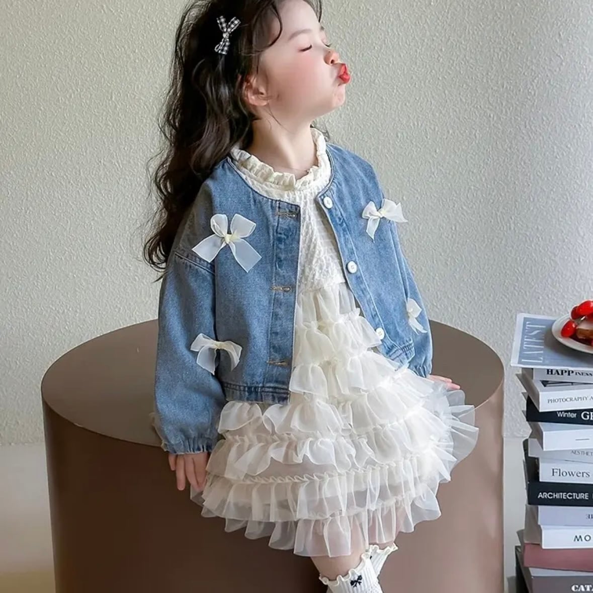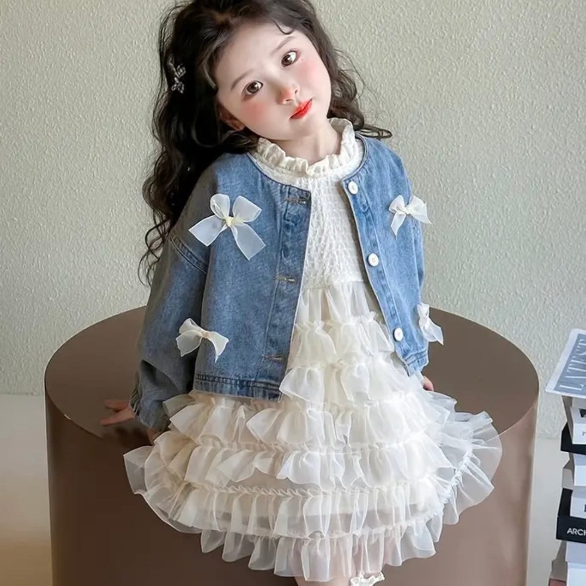 かわいいデニムワンピースの2点セットが新登場!カジュアルなお出かけや友達との遊びにピッタリで、お子様のキュートな魅力を引き立てます♡リボンデザインがアクセントとなり、元気いっぱいのスタイルを演出します。サイズ展開も豊富にご用意しており、お好きなサイズを選ぶ楽しさがあります。