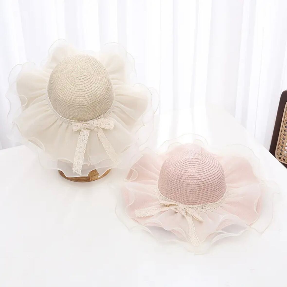 【即納 52-54cm】ストローハット帽子 帽子 ピンク