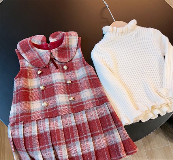 おしゃれなギンガムチェックの2点セットです!レッドとブラックの2色展開で、お子様のコーディネートに華やかさをプラスし、特別なお出かけやお友達との集まりにぴったりなアイテムです。