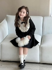 かわいいリボンデザインのキッズワンピースが登場です!90-150cmのお子様にぴったりなサイズ感で、シンプルながらもおしゃれなブラックカラーが特徴です。この服は、柔らかな素材を使用しており、動きやすさと快適な着心地を実現しています!特別な日のお洒落や普段着としても大活躍します。ぜひお試しください。